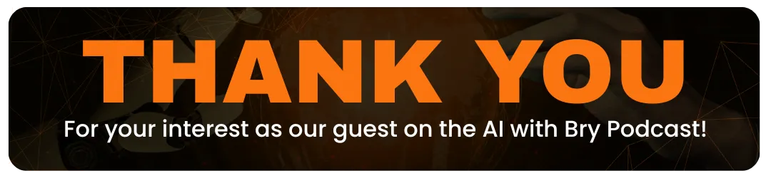 Thank you for your interest in being a guest on the AI with Bry Podcast. We’re excited about the possibility of sharing your insights with our growing community of founders, operators, and innovators at the intersection of AI, ethics, and impact.